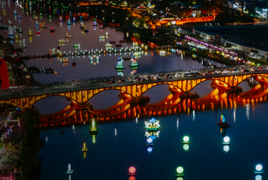 진주 남강 유등 축제의 하이라이트는 바로 진주 남강에 열리는 수상 불꽃놀이입니다. 축제의 개막일과 폐막일에 강 위에서 펼쳐지는 대규모 불꽃놀이가 예정되어 있습니다. 밤에 아름답게 빛나는 유등과 불꽃놀이가 어우러진 환상적인 장면은 놓치지 말고 감상해 보세요! 잊지 못할 추억이 될 진주교에서의 수상 불꽃축제입니다